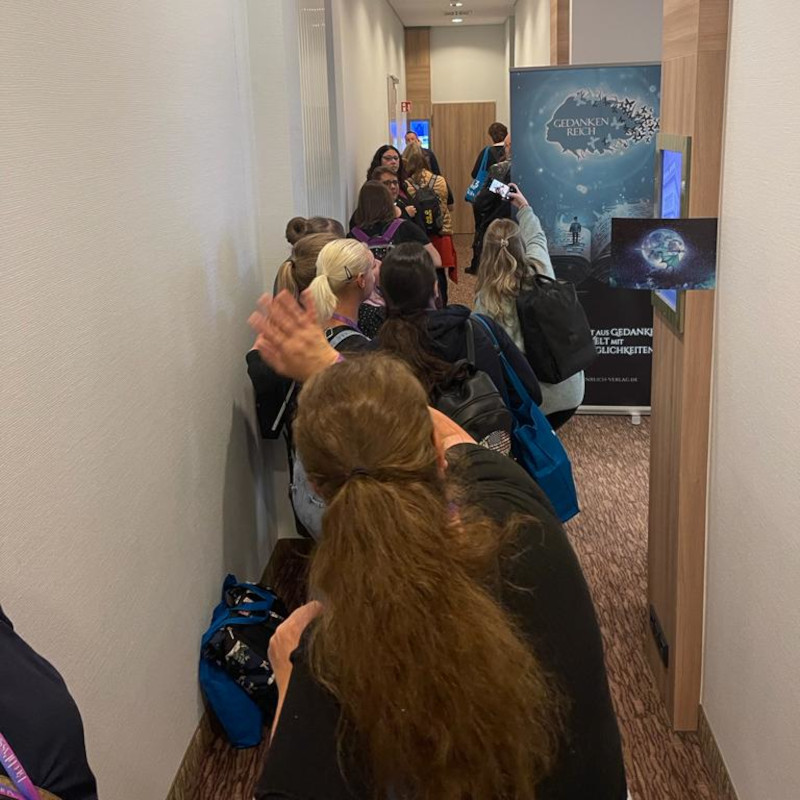In unserem Raum konnte man Lesungen lauschen, in den Geschichten stöbern, unsere Trailer schauen und ohne großen Messetrubel mit allen schwatzen. Einige unserer Titel waren vor Ort schon nach einer Stunde vergriffen - wir waren etwas geplättet! 😯